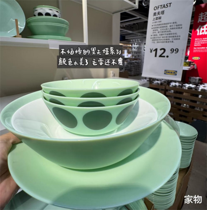 我很喜欢宜家“奥夫塔”系列的碗碟餐具,这系列的餐具基本都是亚克力材质的,又轻又耐用,但外观还做得跟陶瓷一样,再加上这几年在白色碗碟基础上又增加了许多可爱的图案纹饰,可以列入我的宜家必买清单了。