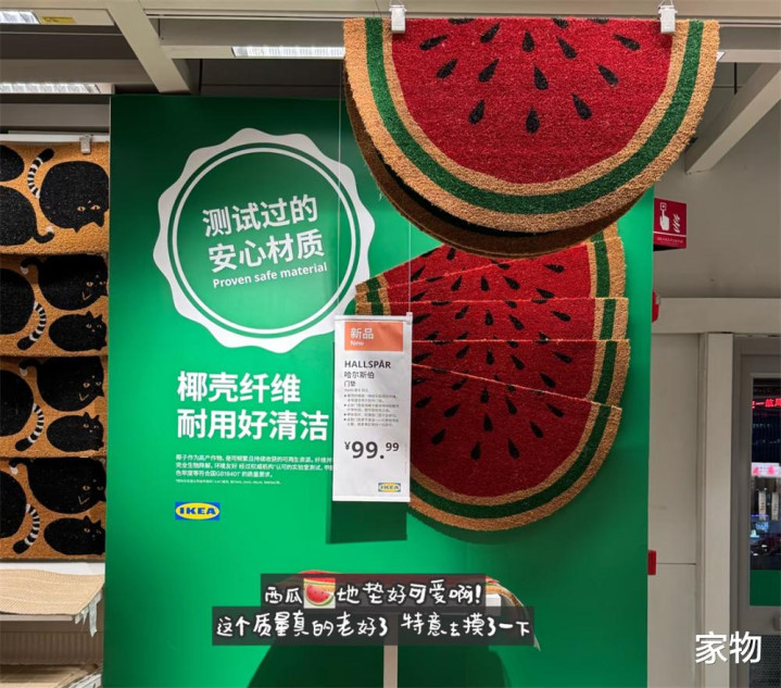 它是椰壳纤维材质,天然环保好清洁,当然,最吸引人的还是它切开的一瓣西瓜造型,放在卫生间门或者玄关里,为家里都增添了几分俏皮可爱。