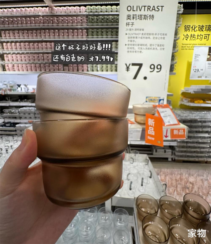 我一直说,宜家的玻璃制品,尤其是杯子做得很不错,就像这小玻璃杯一样,才七块多,做得却特别有质感——其外面是磨砂材质,拿在手上防滑还防指纹,内壁则是光滑玻璃,方便清洁。