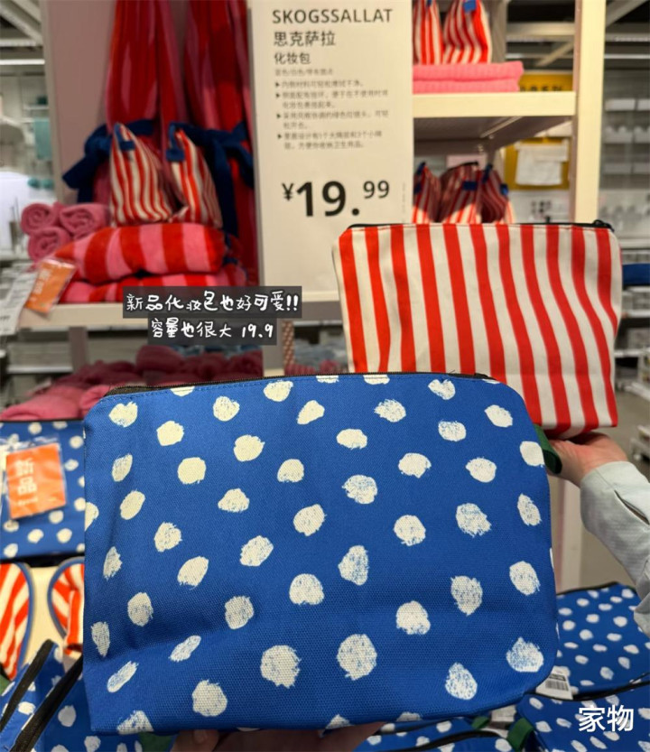 都说自古红蓝出CP,这化妆包也是如此,这次一口气除了蓝底白点和白底红色条纹,两种颜色的化妆包,都特别可爱,容量大的同时还很结实,我都想好了,到时候就买俩,一个放家里,一个出差旅行用。