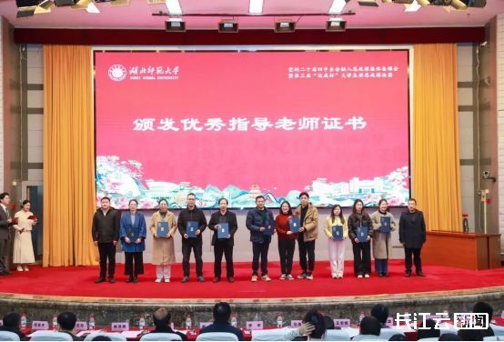 在校级初赛表彰环节,校党委宣传部常务副部长祝治国、北京优师致远教育公司董事长肖洪旭为全校5个院系的15名优秀指导老师颁发荣誉证书,表彰其在各学院初赛组织及选手指导工作中的辛勤付出,并预祝其指导的队伍在决赛中取得优异成绩。