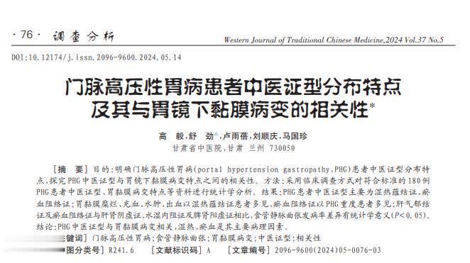 参考文献[1] 高毅.门脉高压性胃病患者中医证型分布特点及其与胃镜下黏膜病变的相关性 , 西部中医药, 2024-05-15