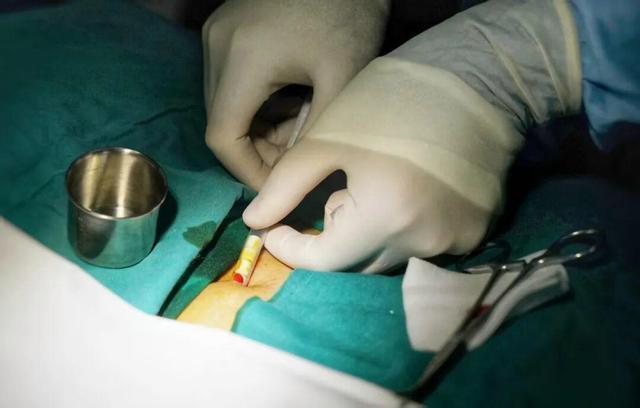 13时30分,植入手术在回龙观医院门急诊综合楼一层治疗室内准时开始。普外科副主任医师颜艺超在为张先生进行了局部皮肤麻醉后,在其肚脐下两指处的皮肤上切开一个1厘米左右的小口。之后,他使用止血钳在开口两侧的皮下脂肪层分离出小“隧道”,使用推药器将10粒皮下植入剂推入“隧道”,并进行缝合。全程10分钟,手术顺利完成。