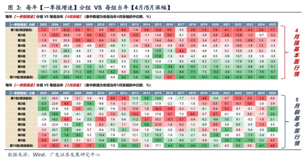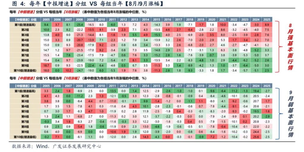 事实上,每年财报季的下一个月,市场的涨跌表现与盈利的相关度都较低,比如5月(一季报披露结束)、9月(中报披露结束)