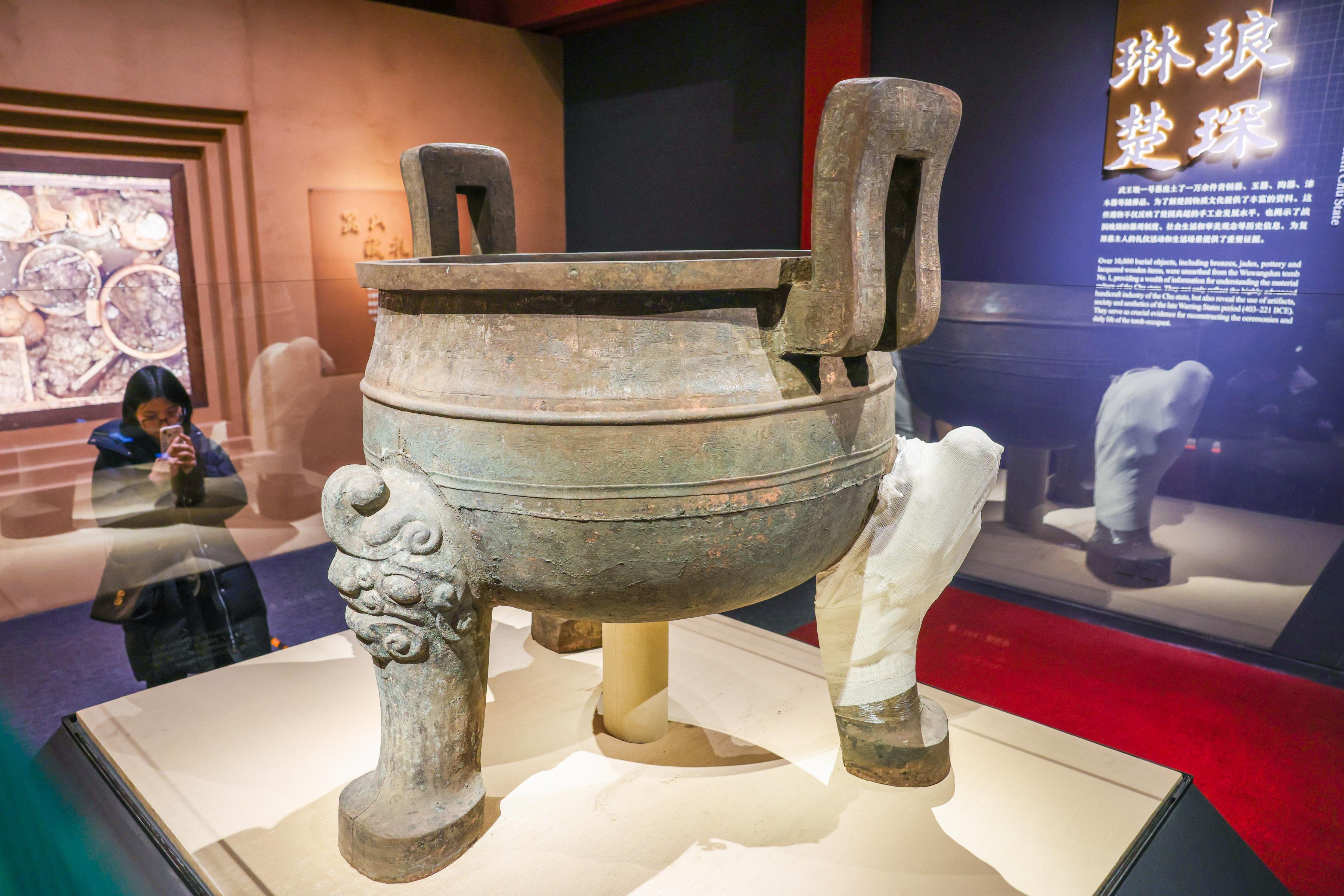 他的陵寝是迄今经科学发掘的规模最大、等级最高、结构最复杂的楚国王级墓葬。武王墩墓考古发掘队领队宫希成说,2020至2024年出土了一万余件珍贵遗物,2025年进入实验室研究保护阶段。“几乎每个月都有新发现。这些文物不仅为研究楚国、两周直至西汉时期的王级陵墓制度、陵园规划、埋葬习俗等问题提供了重要实证,还为今天的我们去解读先秦文明提供了实物佐证。此次展品绝大多数是首展。”