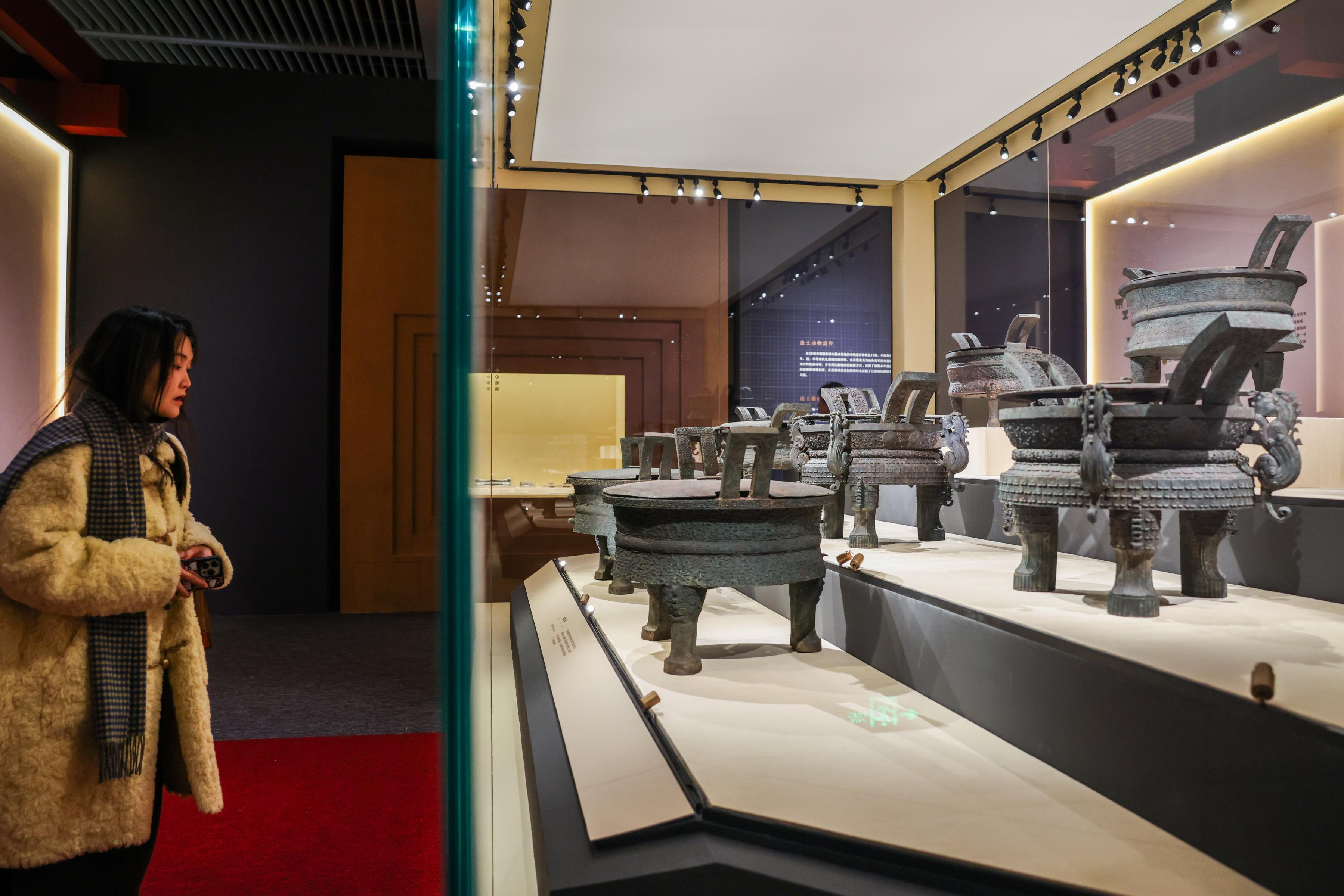 九鼎八簋的青铜礼器组合,延续了周代最高等级的礼制规格;盖钮是一只平飞的小鸟,青铜钟虡(音jù)是龇牙笑的老虎造型,曲身回首的玉龙展现着楚国的浪漫……还有楚王的“乐器天团”,泡在“水”里的彩绘龙凤纹漆木案等代表性器物,分“启封秘藏”“椁藏玄契”“琳琅楚琛”“以属华夏”4个部分,展现绚丽多姿的楚文化。顾志洋说,希望观众能够通过考古成果展,深入理解楚文化在多元一体的中华文明发展进程中的独特作用与重要地位,亲身感受考古学的魅力。